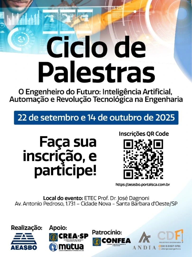A AEASBO convida você para dois encontros imperdíveis sobre Inteligência Artificial, Automação e Revolução Tecnológica na Engenharia.