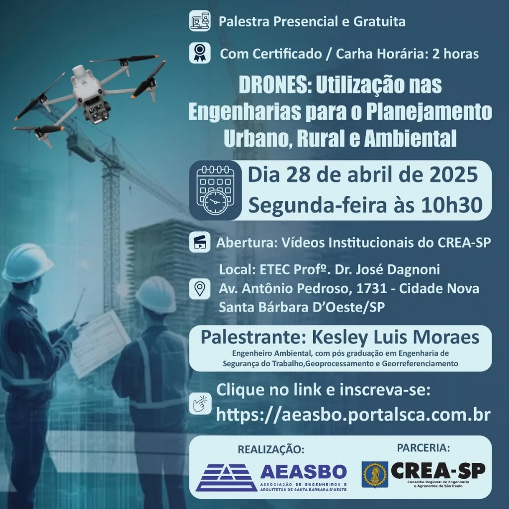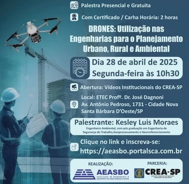 Palestra: DRONES: Utilização nas Engenharias para o Planejamento Urbano, Rural e Ambiental