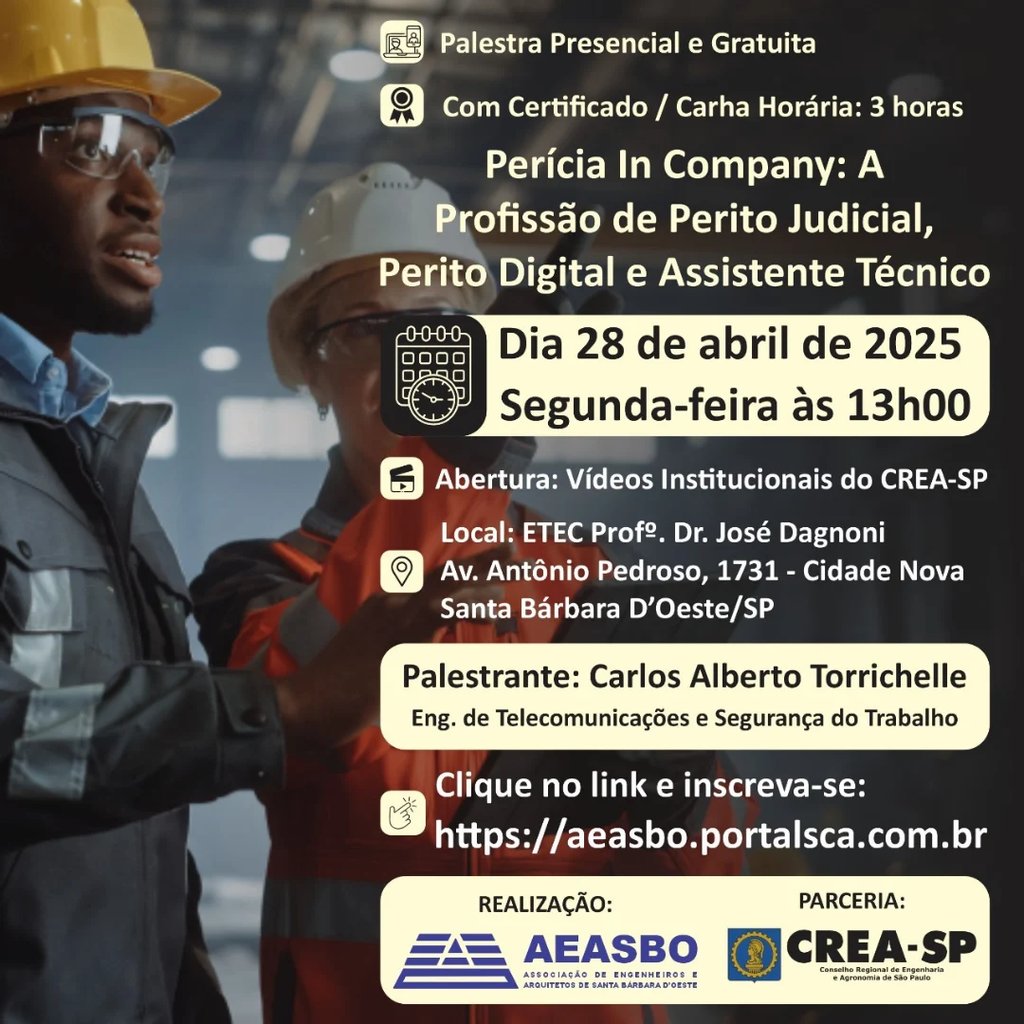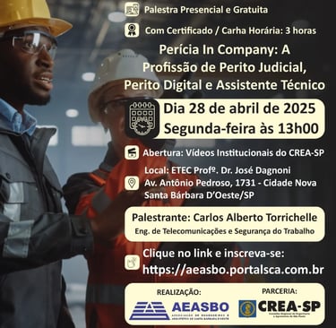 Palestra: Perícia In Company: A Profissão de Perito Judicial, Perito Digital e Assistente Técnico